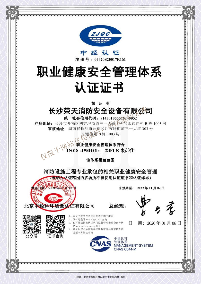職業(yè)健康安全管理體系認(rèn)證證書